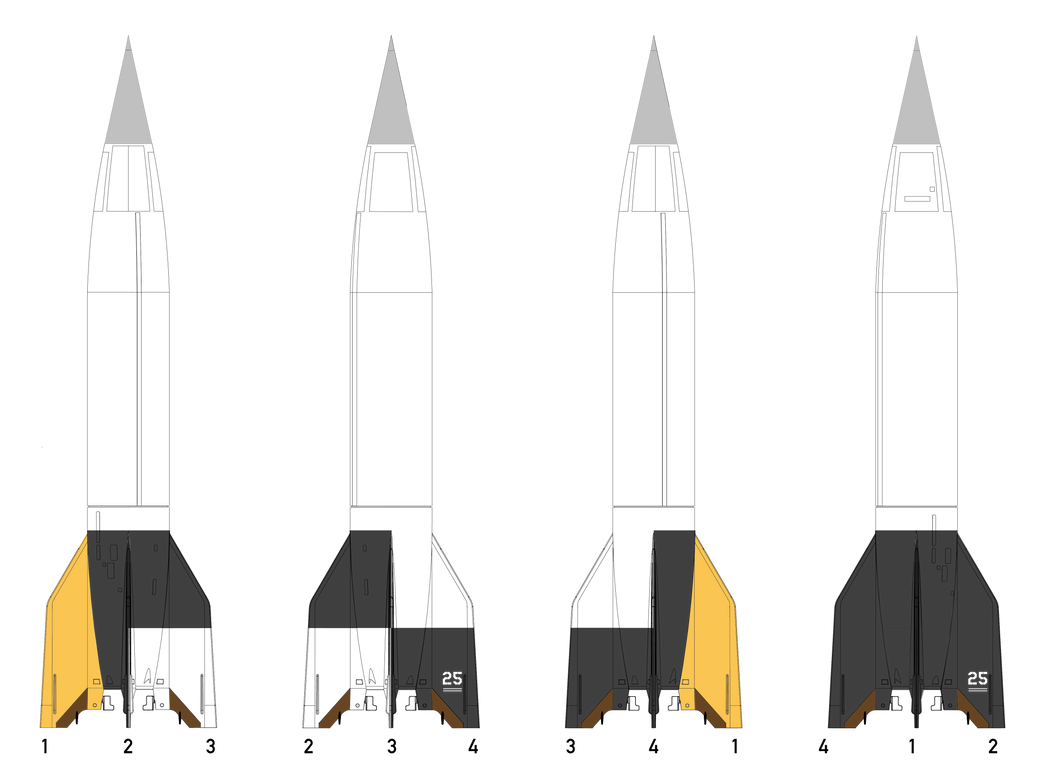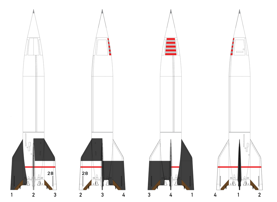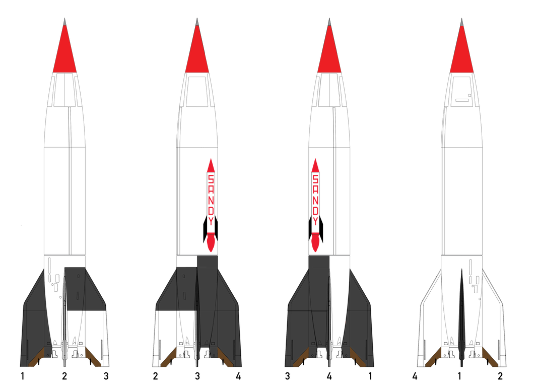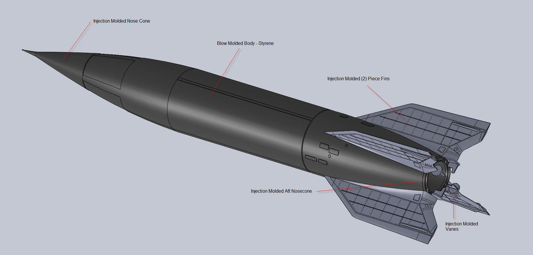 Our V-2 kit will return soon with an all new decal sheet, documenting multiple examples from the post-World War II era of the rocket. Standing in at 23” tall, The Spacemonkey Models V-2 kit is a 1/24 scale plastic model assembly kit of the World War II-era German V-2 ballistic missile and postwar research rocket. Molded in the USA from high-impact polystyrene, this new 2026 version of our features markings for nine different post-World War II V-2 variants, printed in Ohio by Champion Graphics.